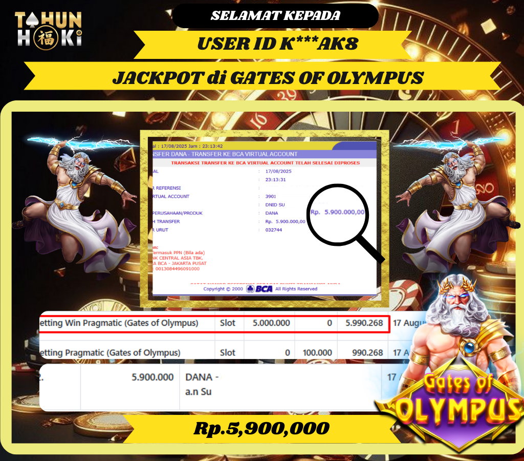TAHUNHOKI JACKPOT GATES OF OLYMPUS PRAGMATIC PLAY Rp. 5,900,000,- LUNAS