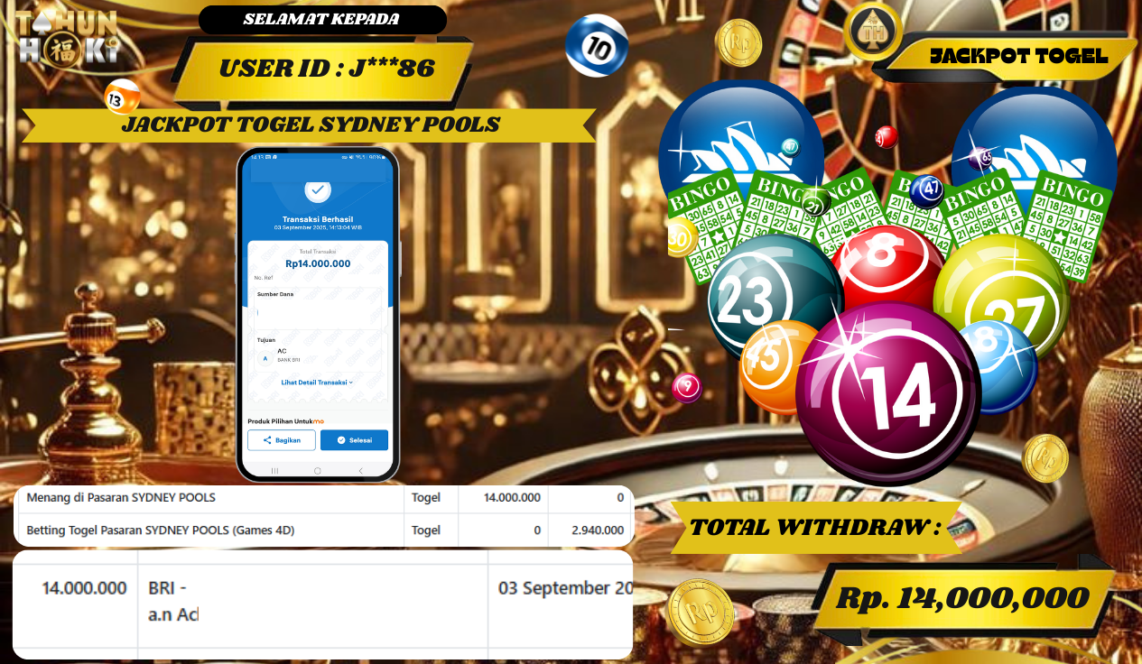 TAHUNHOKI JACKPOT TOGEL SYDNEY POOLS Rp. 14,000,000,- LUNAS
